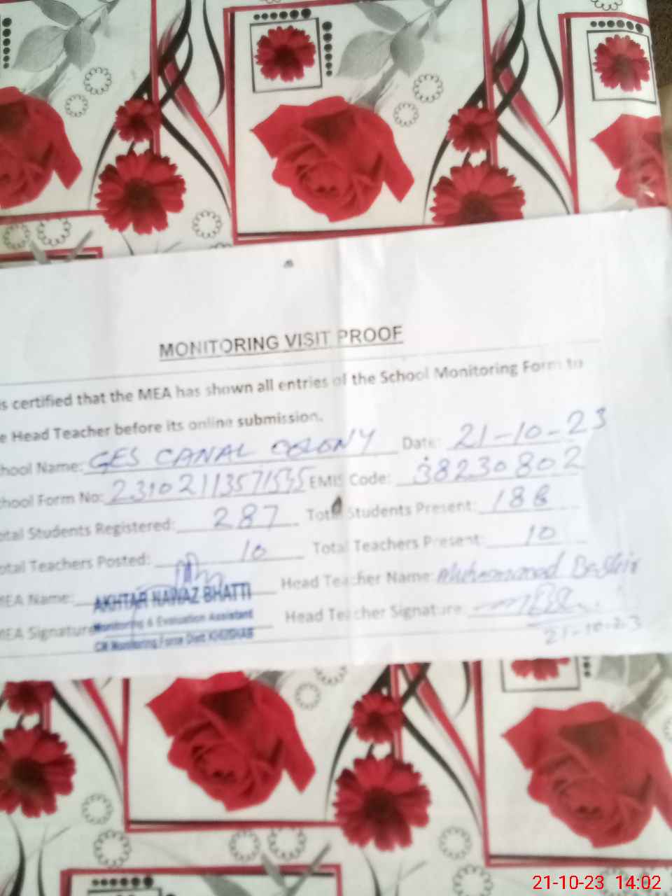 | EMIS Code: 38230802 | Name of School: GES CANAL COLONY GUNJIAL | |||