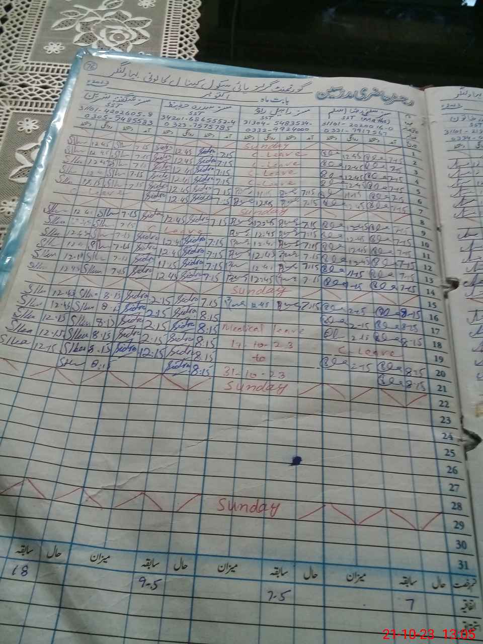 | Leave | Duty | Absent | Maternity | Medical | Ex- Pak |