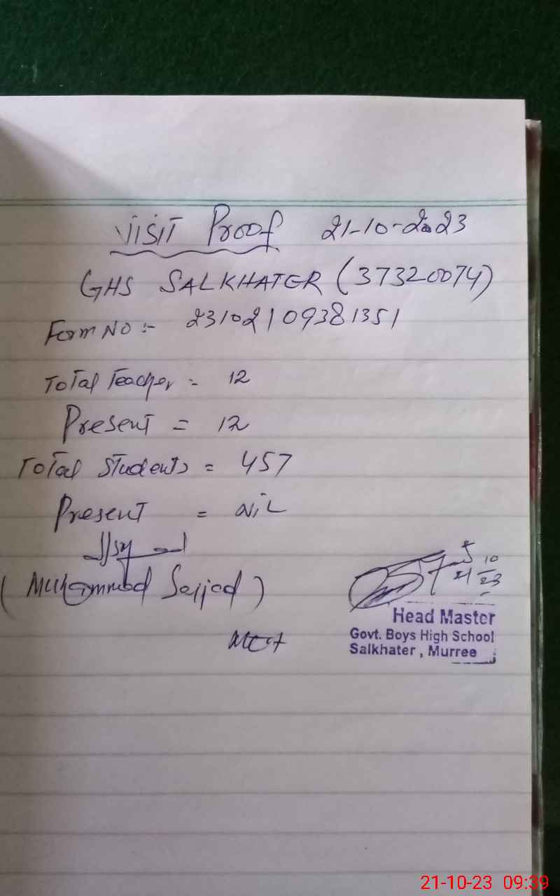 | EMIS Code: 37320074 | Name of School: GHS SALKHATER | |||