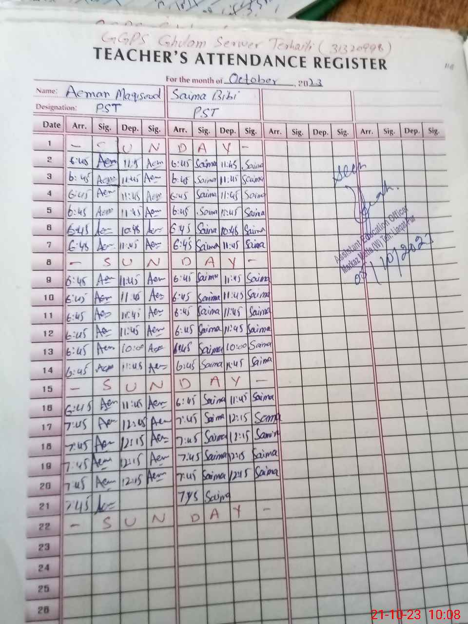 | Name: SA**** BI**** Designation: (School Headmaster's/Headmistress's) PST Phone/Cell Number: 03**** |