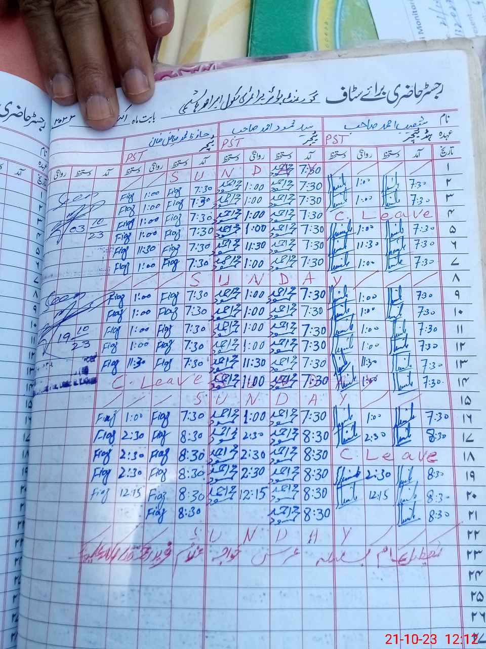 | Name: SH**** AH**** Designation: (School Headmaster's/Headmistress's) PST Phone/Cell Number: 03**** |