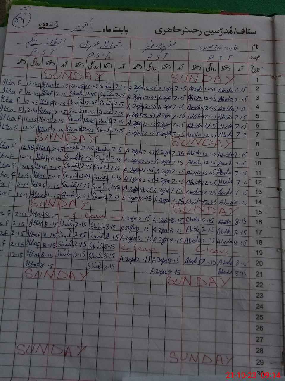 | CNIC | Full Name | Designation | R/C | Absence During Last Calender Month |
