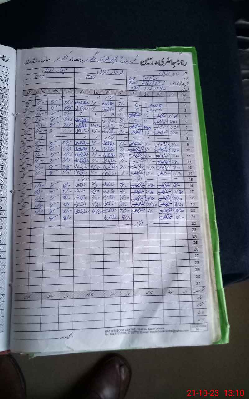 | CNIC | Full Name | Designation | R/C | Absence During Last Calender Month |