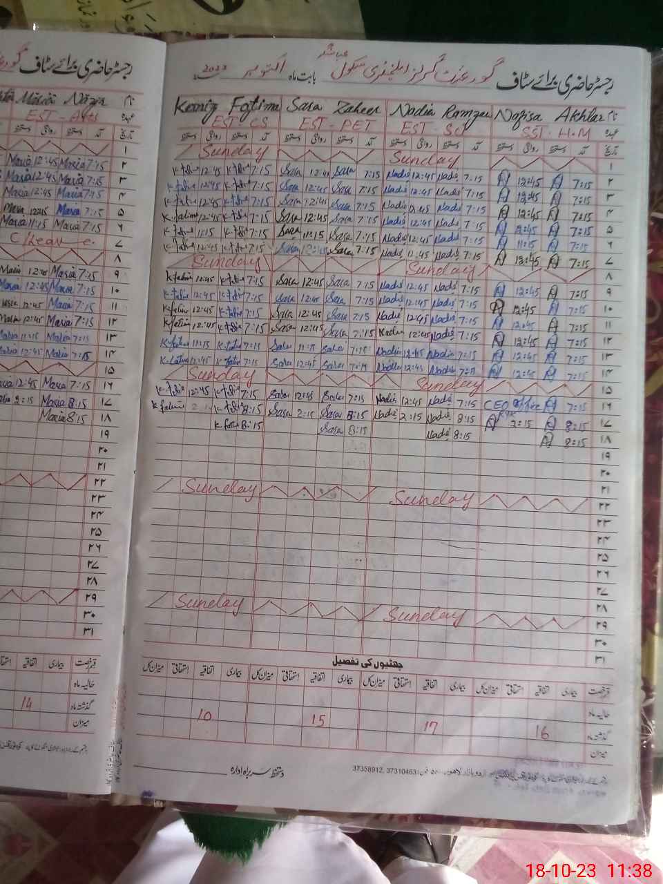 | CNIC | Full Name | Designation | R/C | Absence During Last Calender Month |