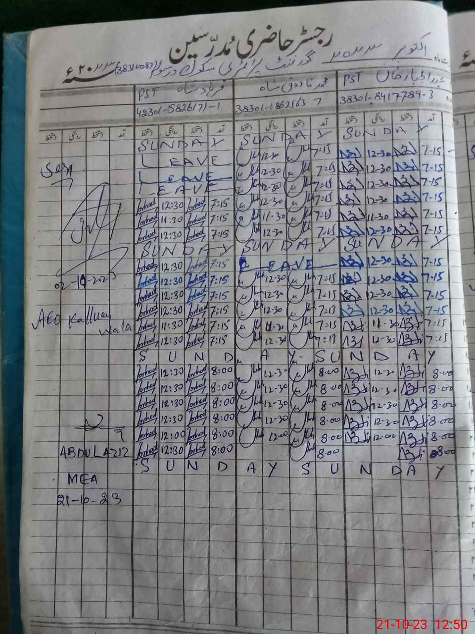 | Name: AB**** JA**** Designation: (School Headmaster's/Headmistress's) PST Phone/Cell Number: 03**** |