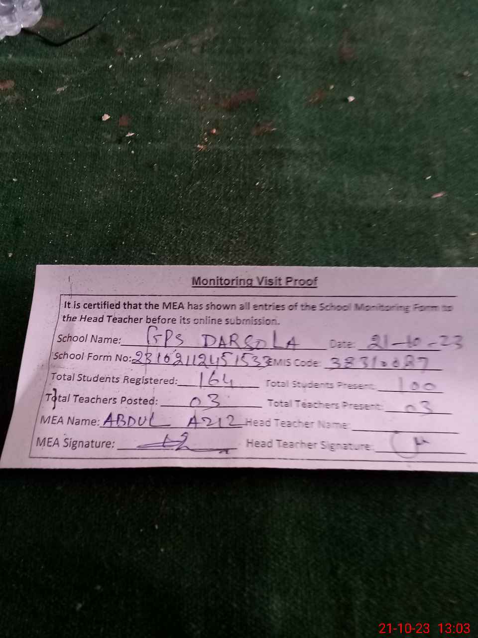 | EMIS Code: 38310087 | Name of School: GPS DARSOLA P/O AWANAN WALA | |||