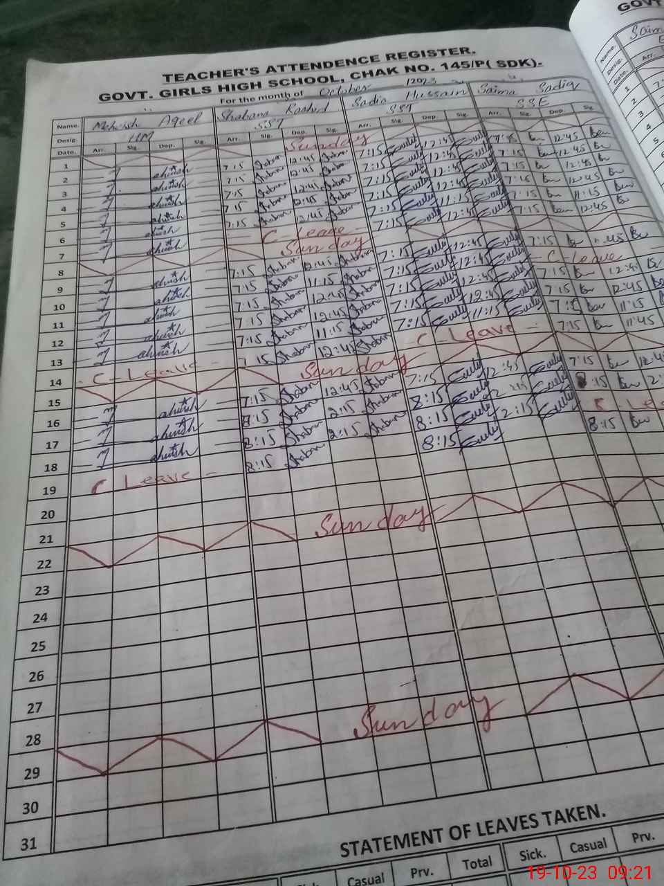 | CNIC | Full Name | Designation | R/C | Absence During Last Calender Month |