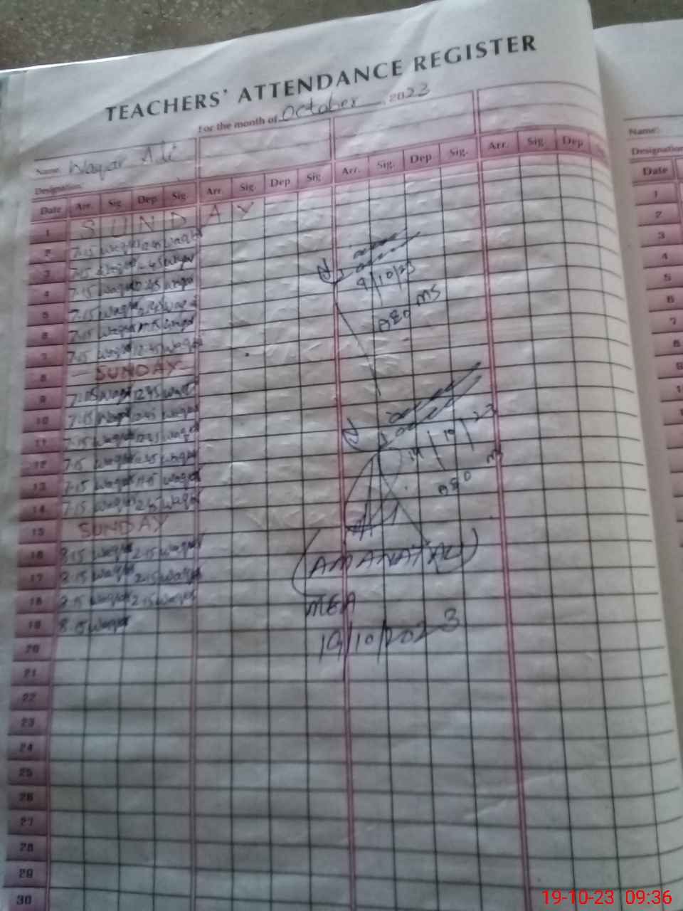 | Monitoring Date: 19-10-2023 | Start Time: 19-10-2023 09:18 AM | End Time: 19-10-2023 10:10 AM | Name of MEA: Am**** Al**** | |