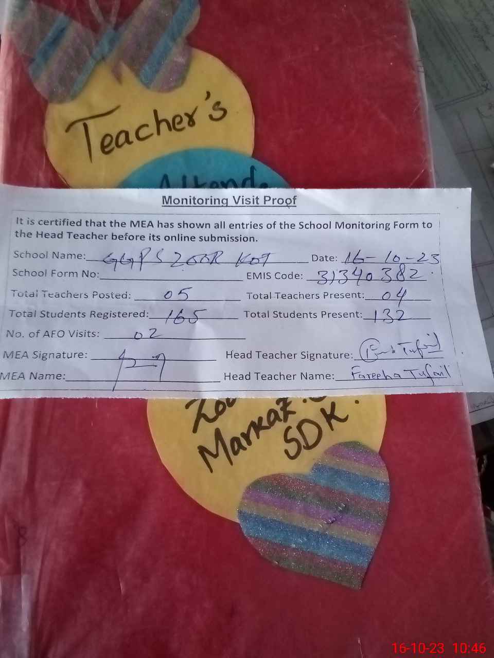 | EMIS Code: 31340382 | Name of School: GGPS ZORE KOT ZORE KOT | |||