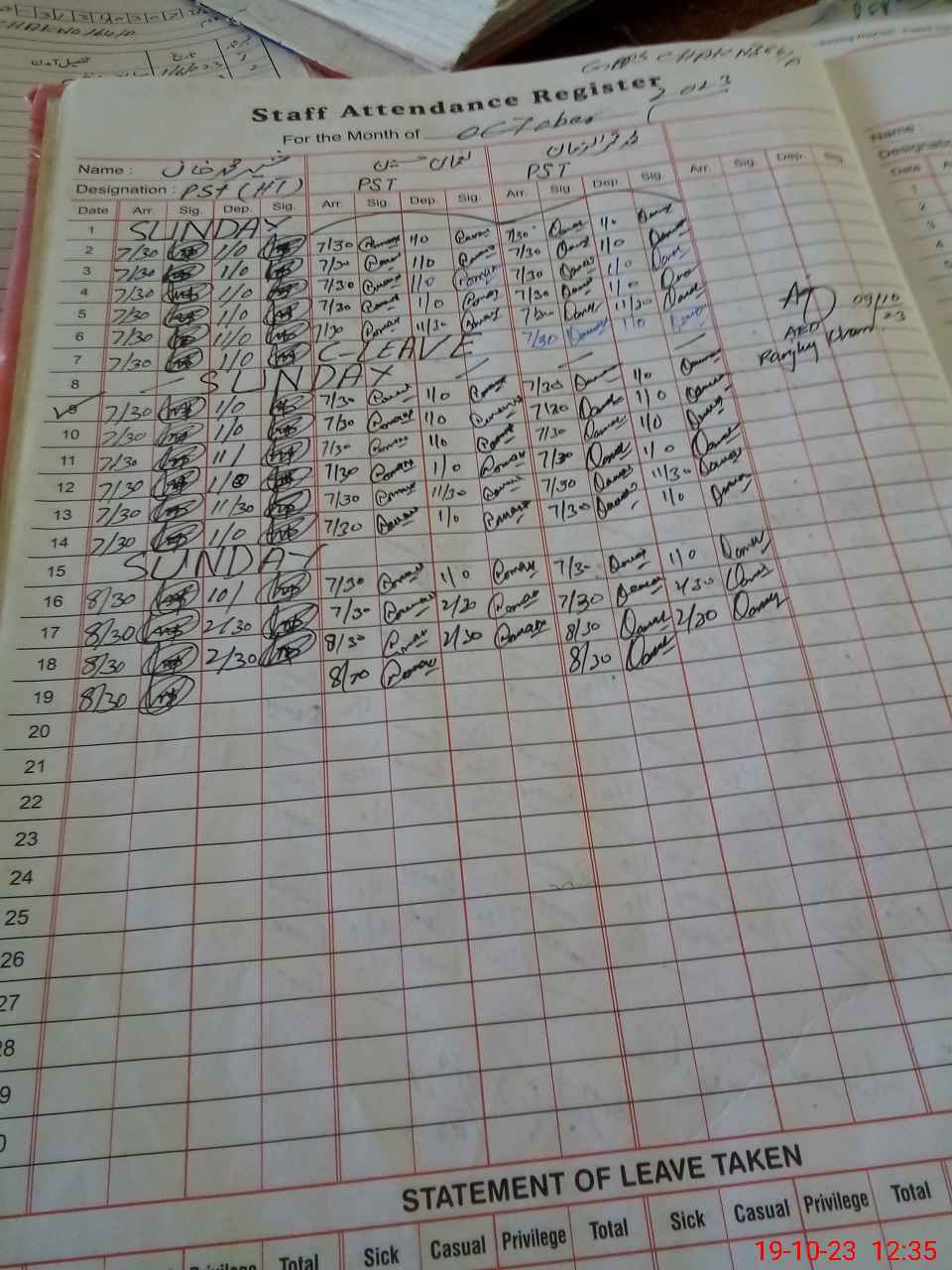 | Name: No**** Hu**** Designation: (School Headmaster's/Headmistress's) PST Phone/Cell Number: 03**** |