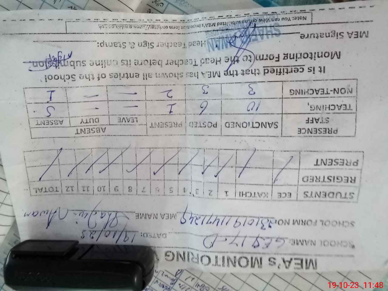| Attendance Register | Head Teacher | MEA with School | Visit Proof |