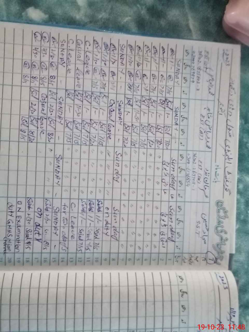 | Leave | Duty | Absent | Maternity | Medical | Ex- Pak |