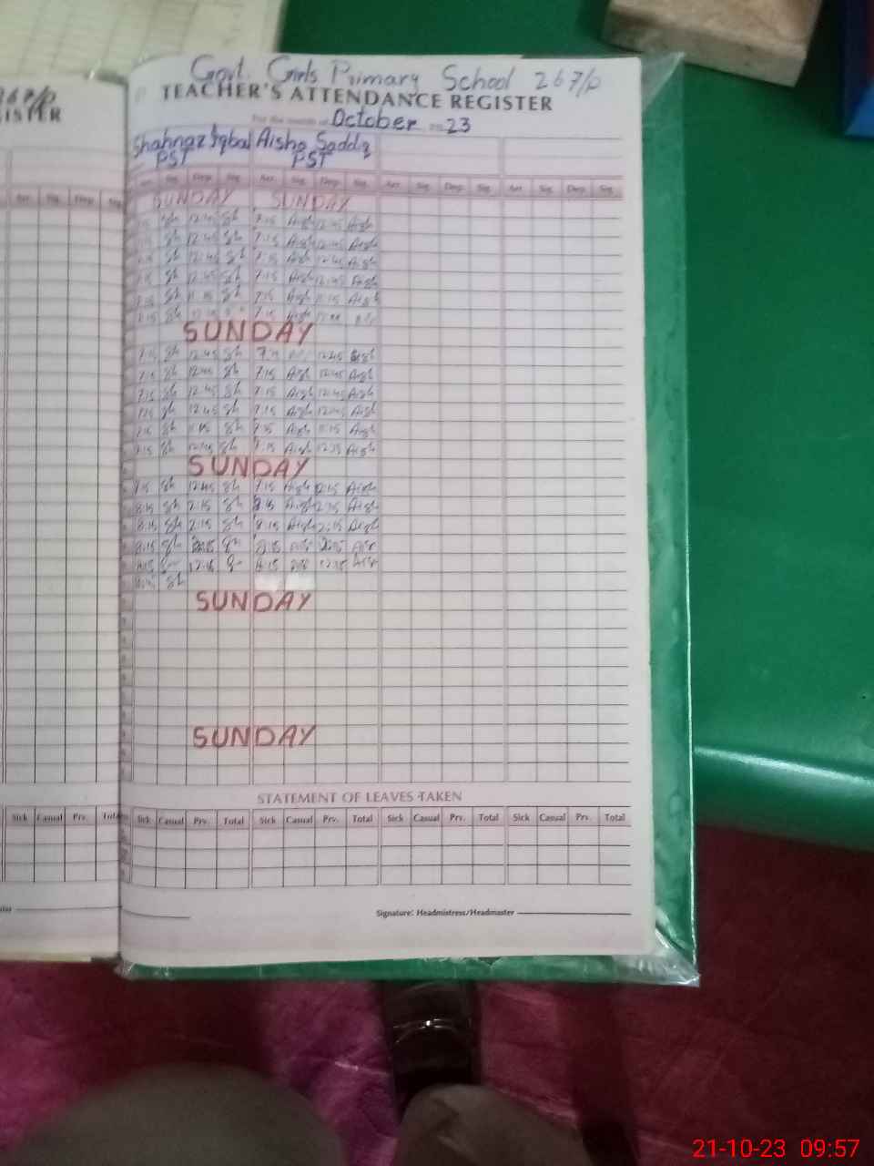 | 31**** | Ay**** Sa**** | 2 | 0 | 0 | 0 | 0 | 0 | 0 | 0 | 0 | 0 | Absent (Un-Authorized) | |
