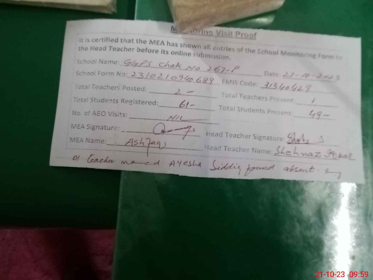 | EMIS Code: 31340429 | Name of School: GGPS 267/P | |||