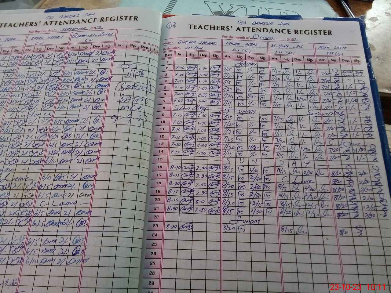| Name: Gh**** Sa**** Designation: (School Headmaster's/Headmistress's) S.S.T.(Science Phone/Cell Number: 03**** |
