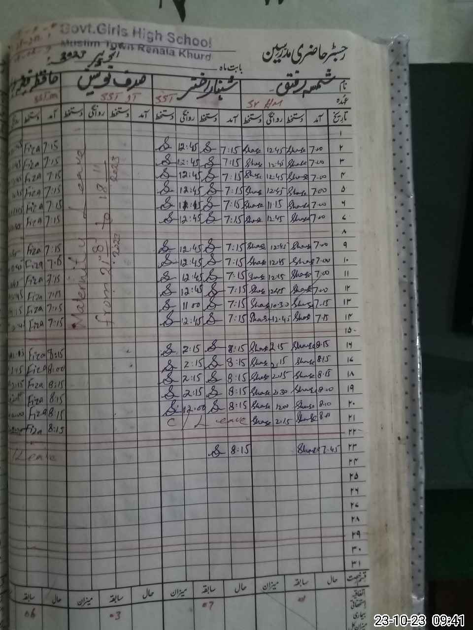 | EMIS Code: 39330120 | Name of School: GGHS MC MUSLIM TOWN RENALA KHURD | |||