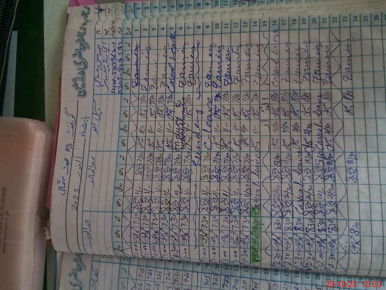 | CNIC | Full Name | Designation | R/C | Absence During Last Calender Month |