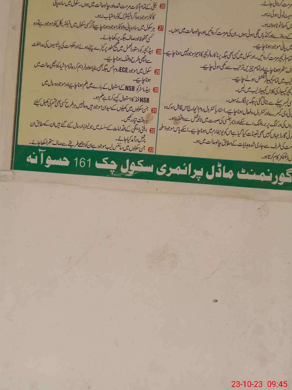 | EMIS Code: 33221167 | Name of School: GMPS CHAK NO 161 JB HUSSUANA | |||