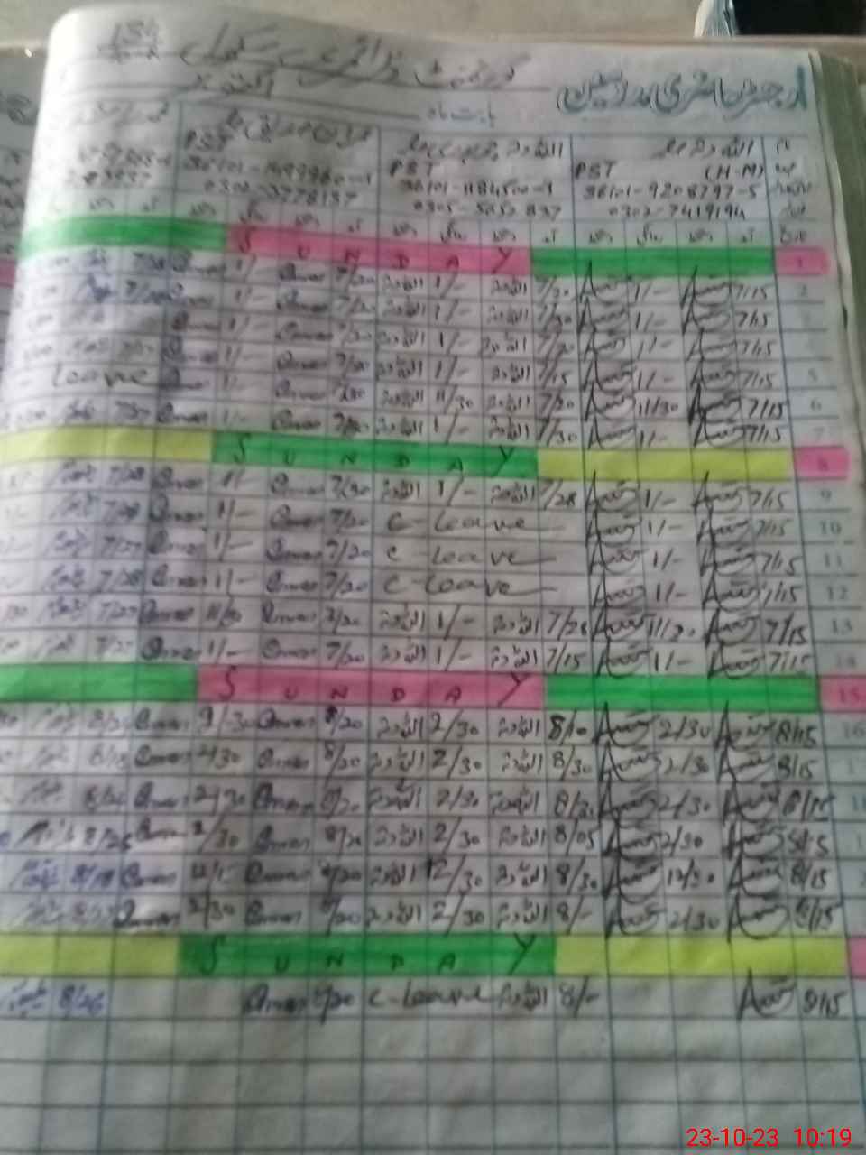 | CNIC | Full Name | Designation | R/C | Absence During Last Calender Month |