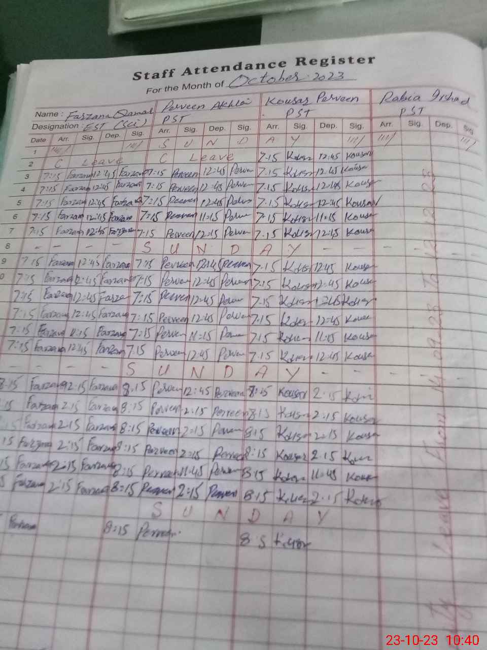 | Leave | Duty | Absent | Maternity | Medical | Ex- Pak |