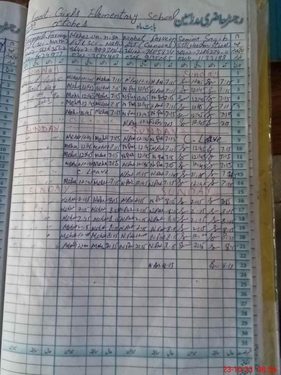 | Name: SA**** SA**** Designation: (School Headmaster's/Headmistress's) SST Phone/Cell Number: 03**** |