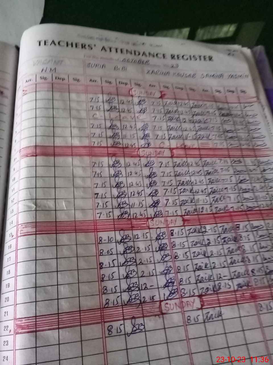 | 36**** | Sh**** Ak**** | 1 | 1 | 0 | 0 | 0 | 0 | 0 | 0 | 0 | 0 | 0 | Exam Duty |