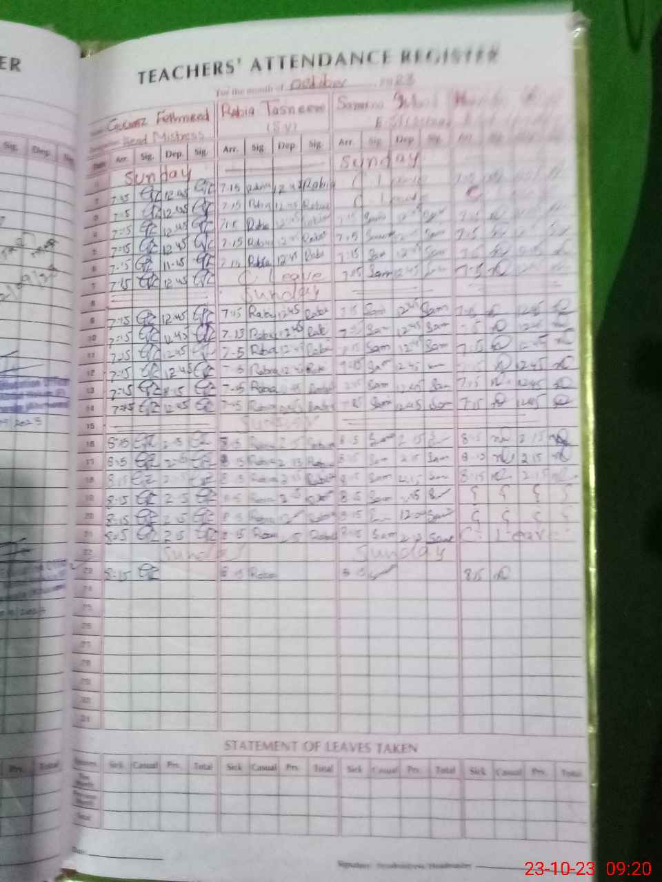 | Leave | Duty | Absent | Maternity | Medical | Ex- Pak |