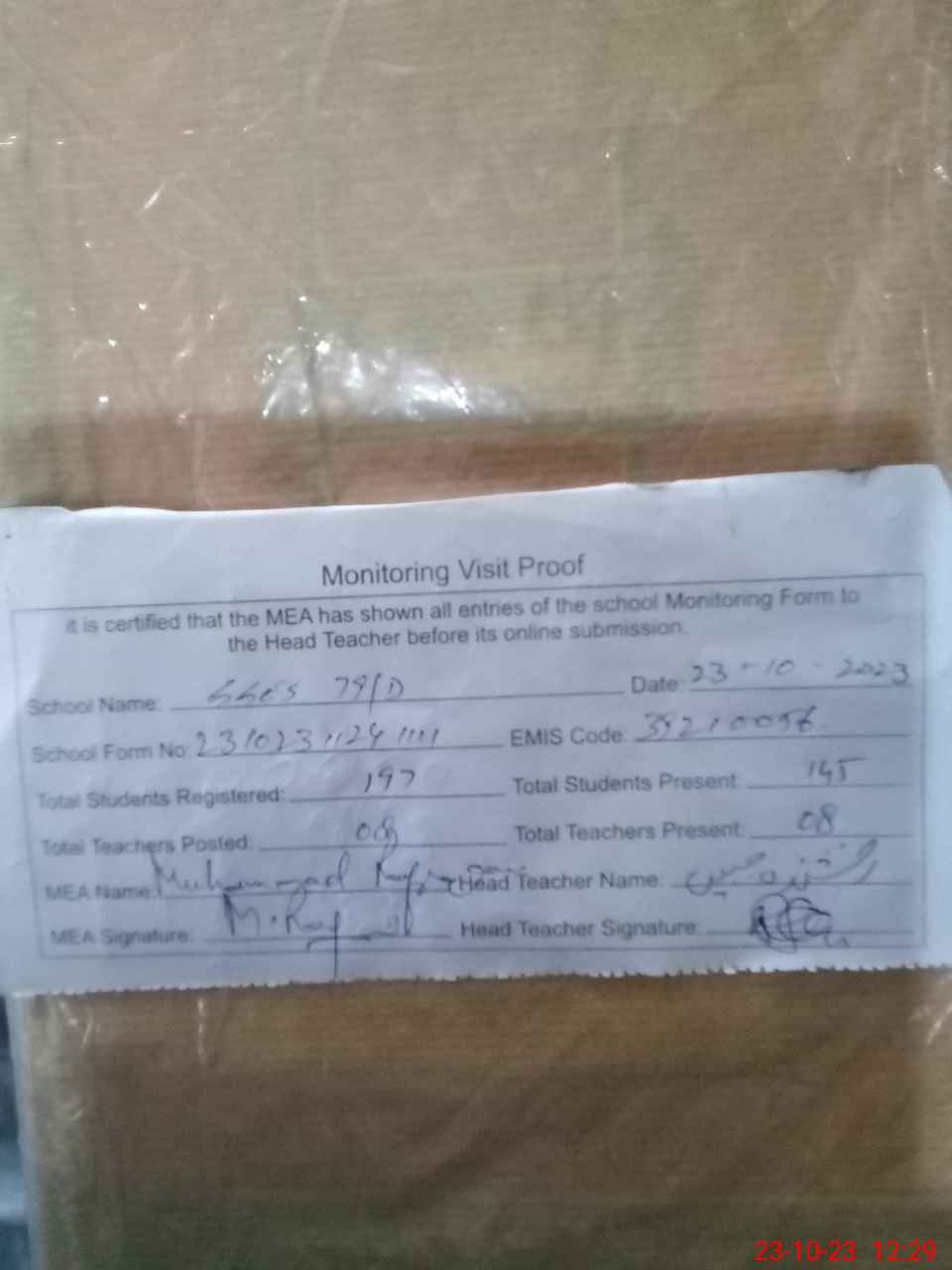 | EMIS Code: 39210056 | Name of School: GGES 79/D PAKPATTAN | |||