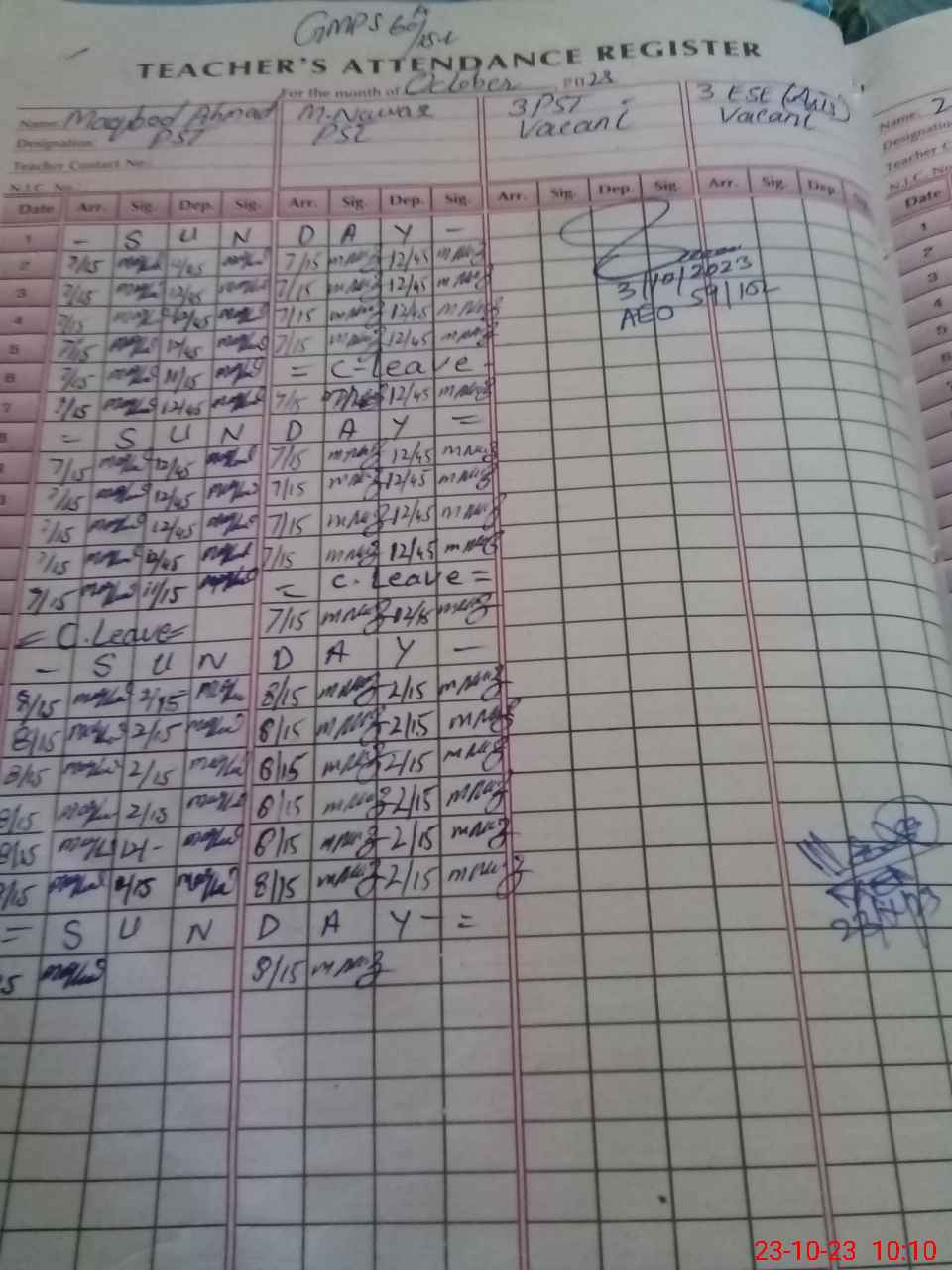 | Name: MA**** AH**** Designation: (School Headmaster's/Headmistress's) PST Phone/Cell Number: 03**** |