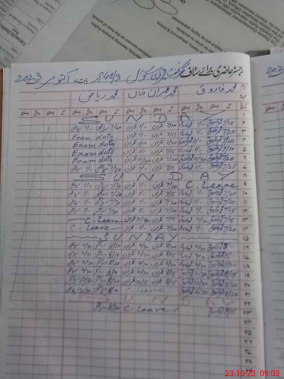 | CNIC | Full Name | Designation | R/C | Absence During Last Calender Month |