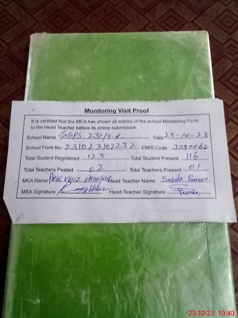 | EMIS Code: 31130062 | Name of School: GGPS CHAK 231/9-R | |||