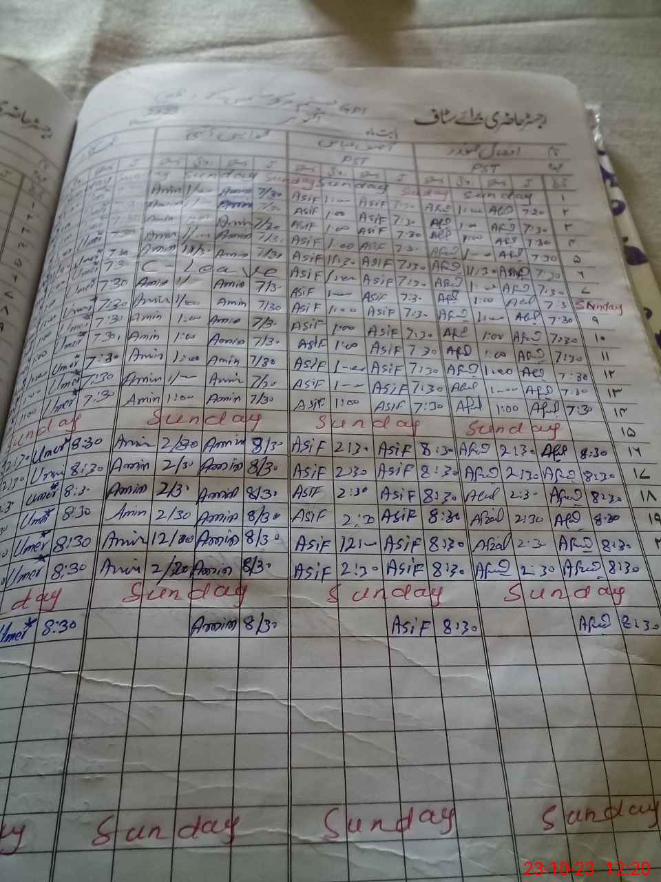 | CNIC | Full Name | Designation | R/C | Absence During Last Calender Month |