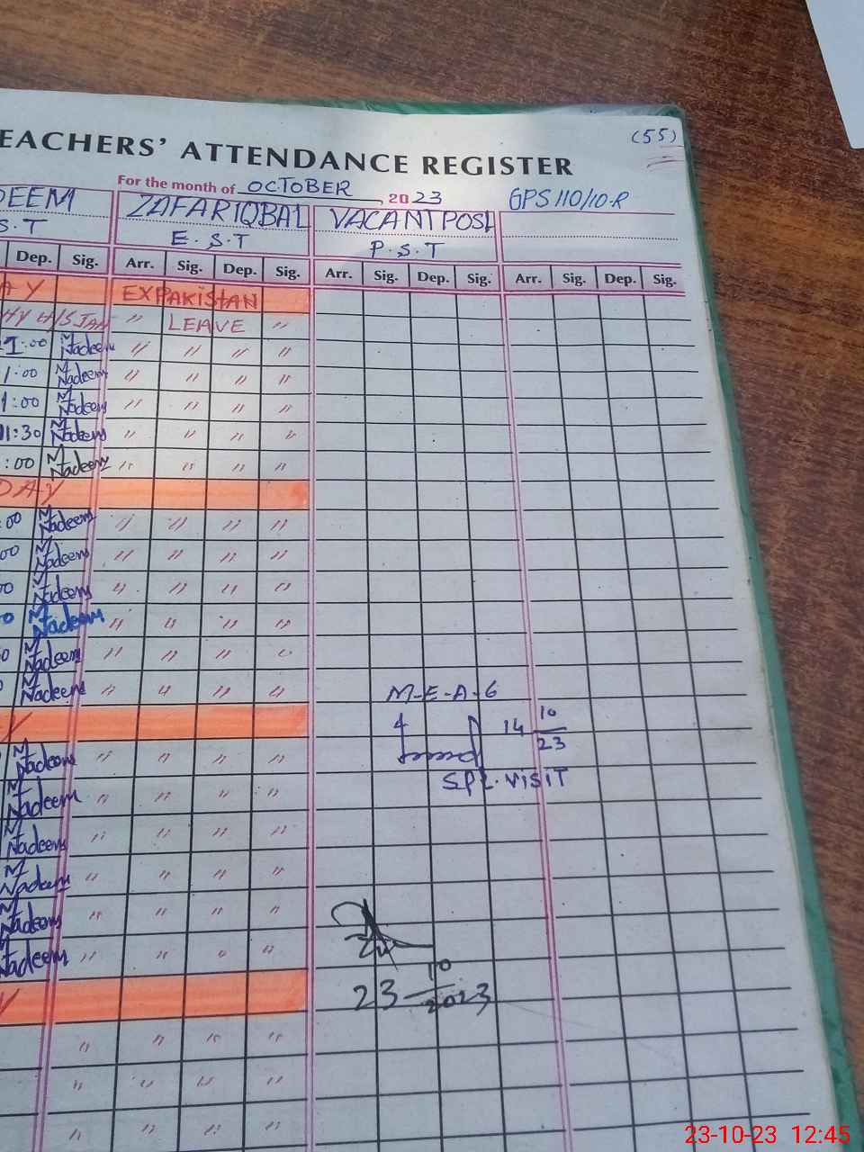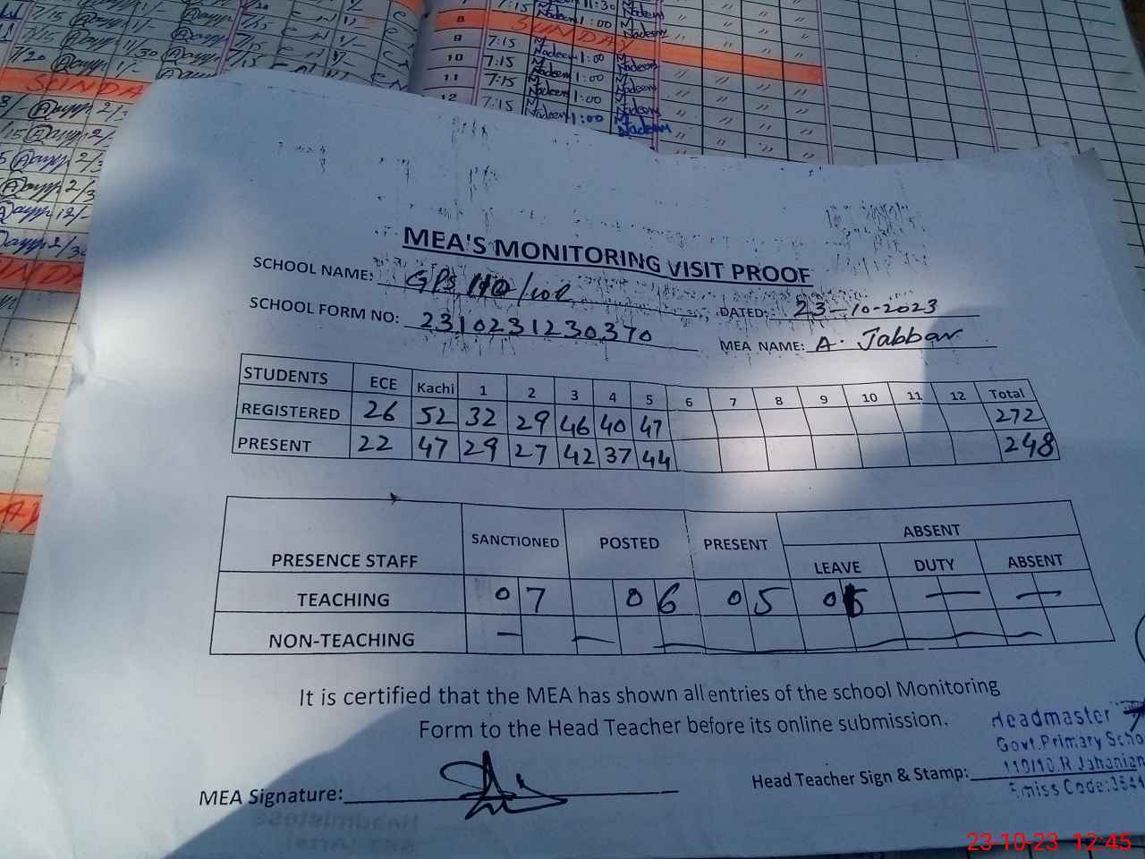 | Attendance Register | Head Teacher | MEA with School | Visit Proof |