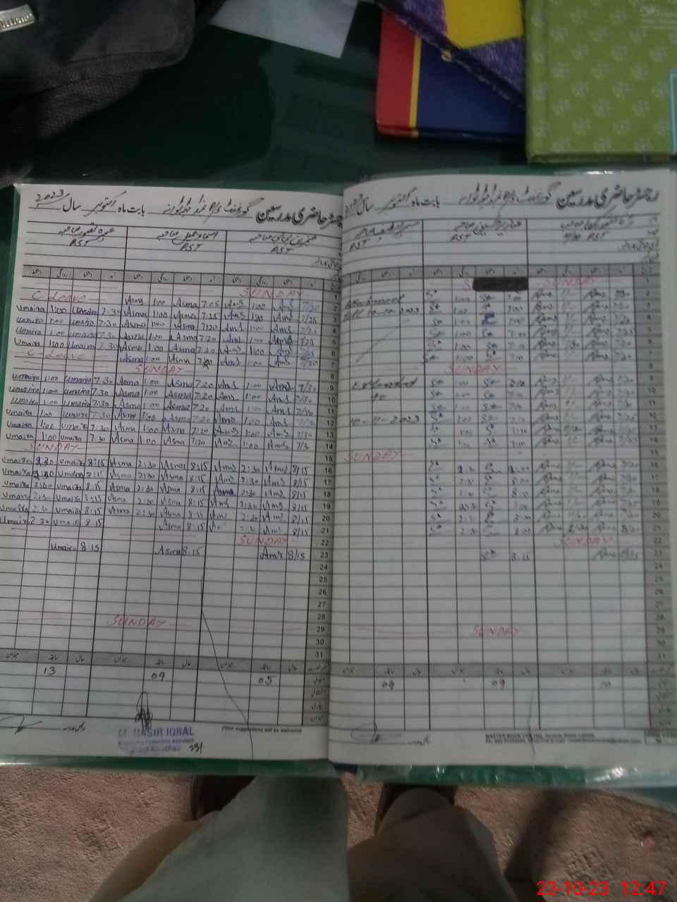 | CNIC | Full Name | Designation | R/C | Absence During Last Calender Month |
