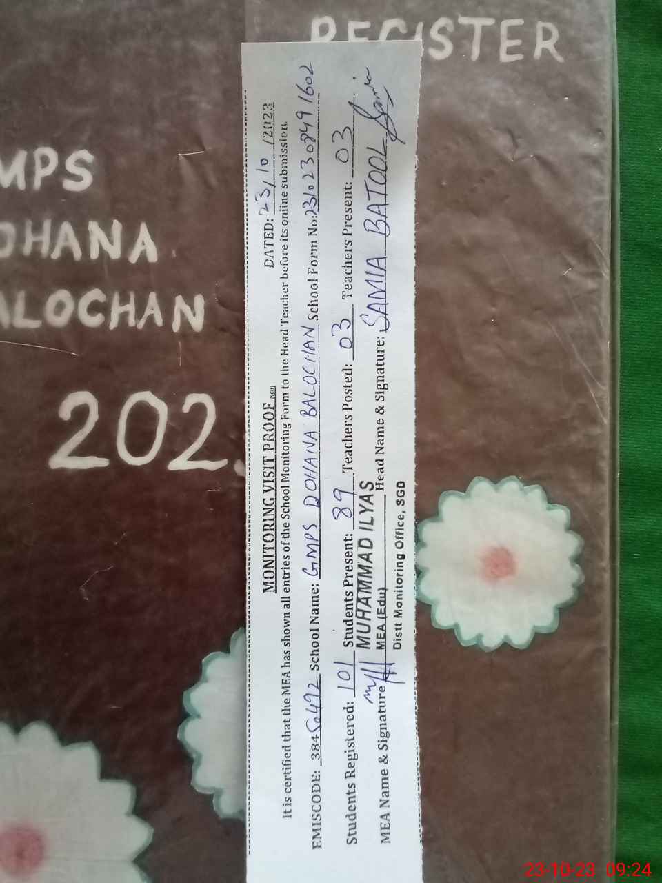 | EMIS Code: 38450492 | Name of School: GMPS DOHANA BALOCHAN | |||