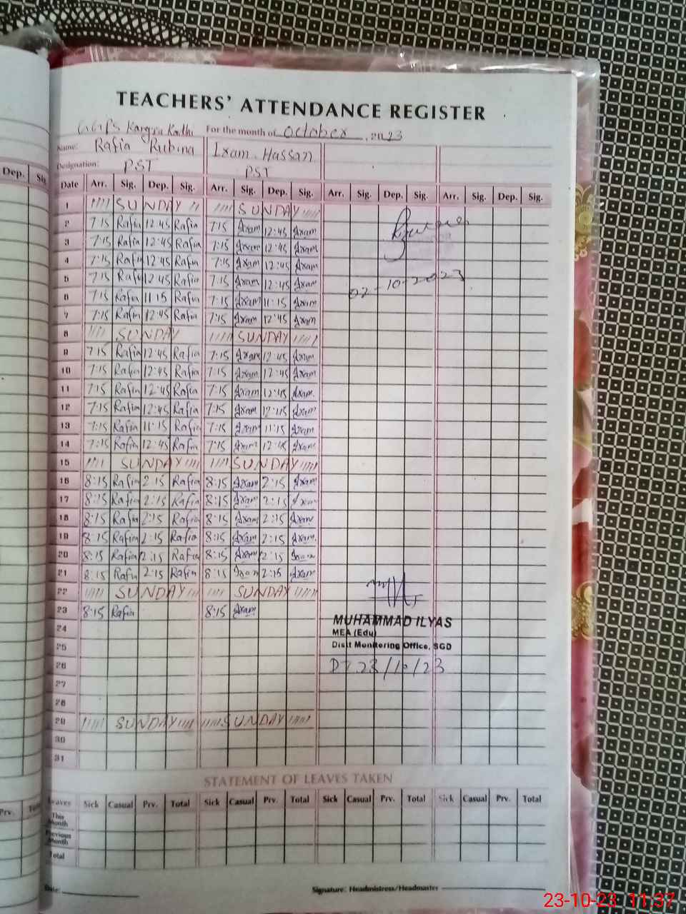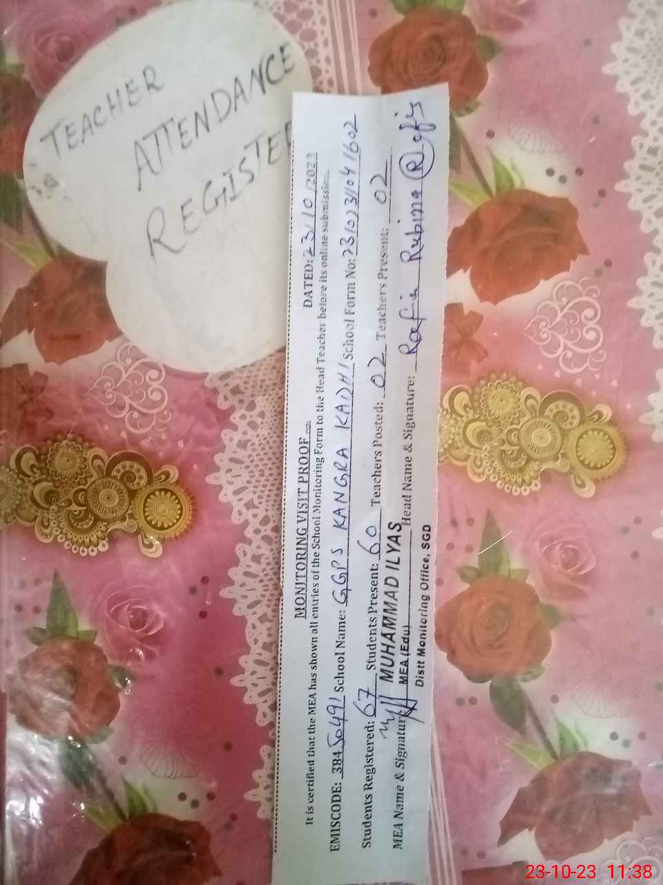 | Attendance Register | Head Teacher | MEA with School | Visit Proof |