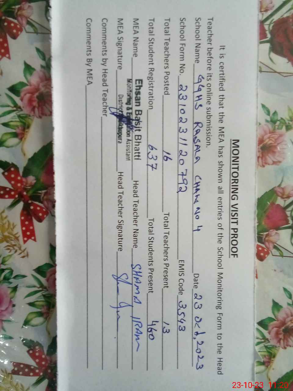| EMIS Code: 35430105 | Name of School: GGHS RASALA CHAK NO. 4 | |||