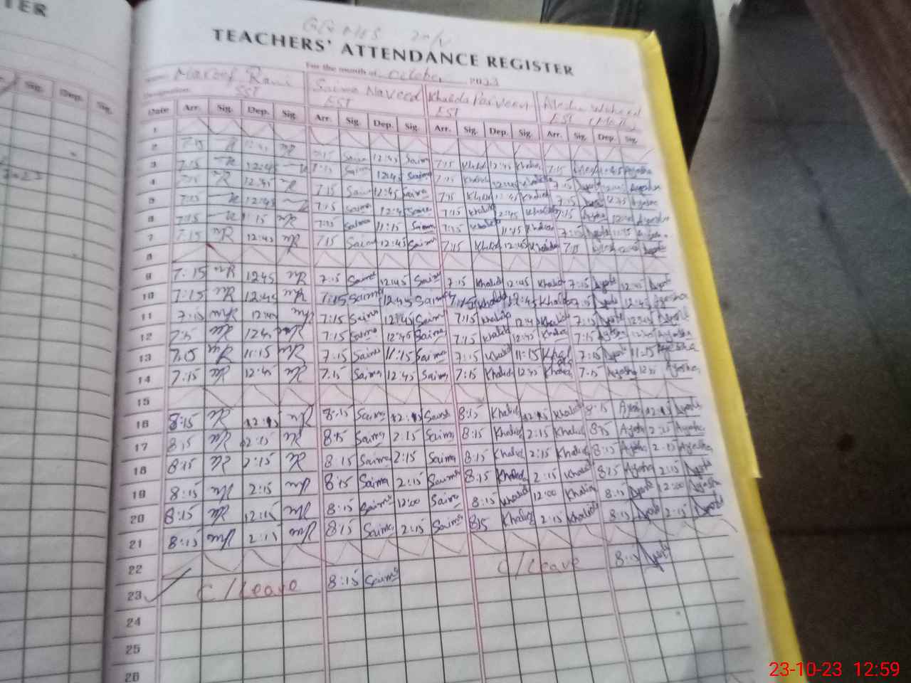 | CNIC | Full Name | Designation | R/C | Absence During Last Calender Month |