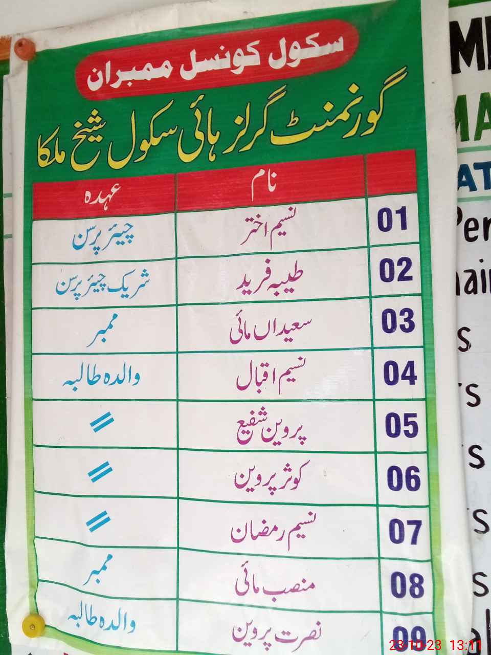 | EMIS Code: 36420648 | Name of School: GGHS SHEIKH MALKA | |||