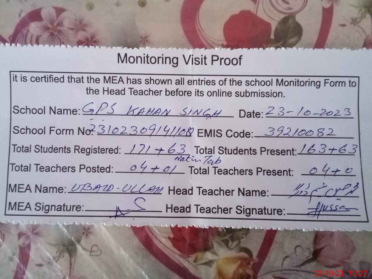 | EMIS Code: 39210082 | Name of School: GPS KAHAN SINGH P.O BLYLE GANJ | |||