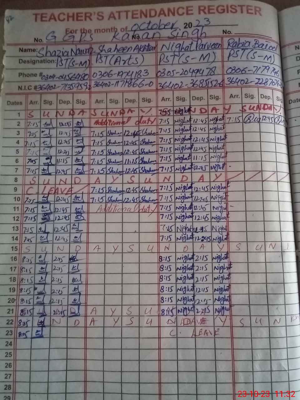 | 36**** | Sh**** Ak**** | 1 | 0 | 0 | 30 | 0 | 0 | 0 | 0 | 0 | 0 | Absent (Un-Authorized) | |