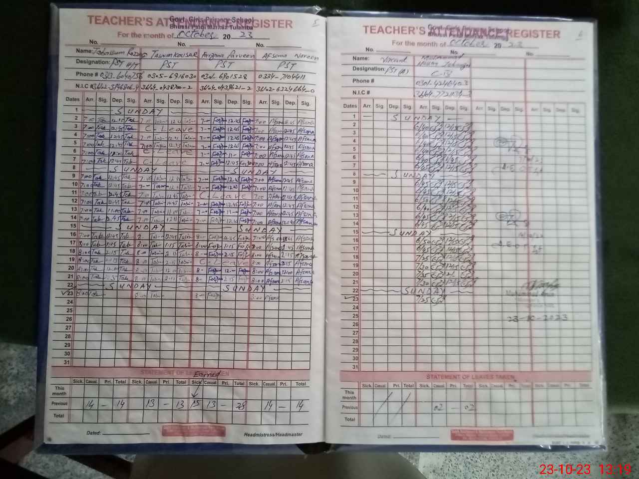 | Name: TA**** RA**** Designation: (School Headmaster's/Headmistress's) PST Phone/Cell Number: 03**** |