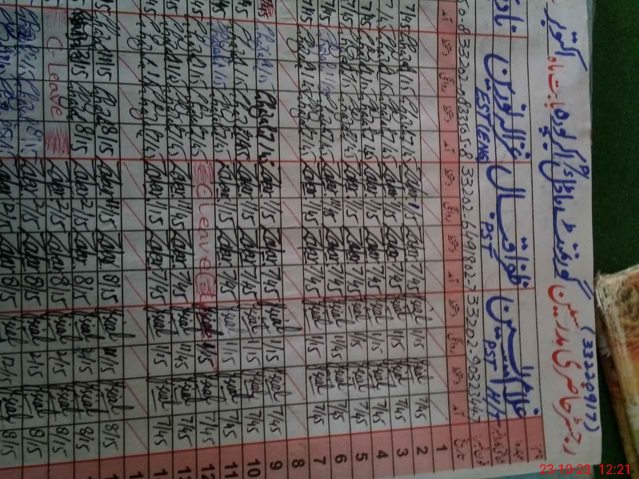 | CNIC | Full Name | Designation | R/C | Absence During Last Calender Month |
