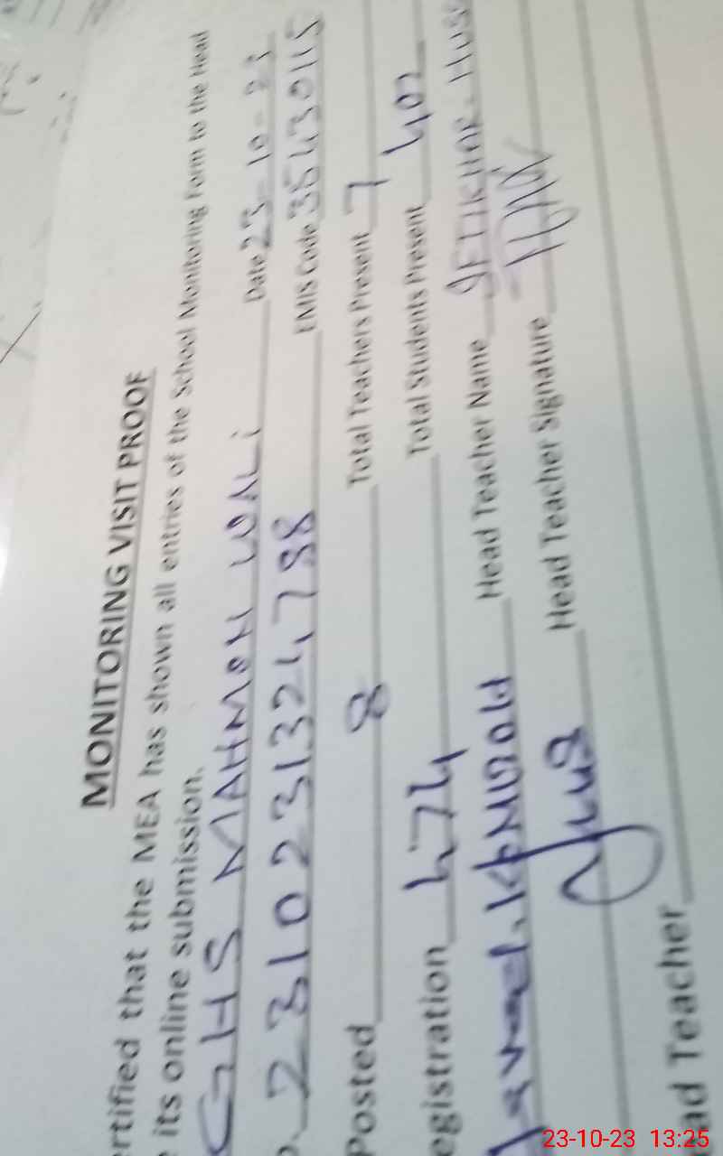 | Attendance Register | Head Teacher | MEA with School | Visit Proof |