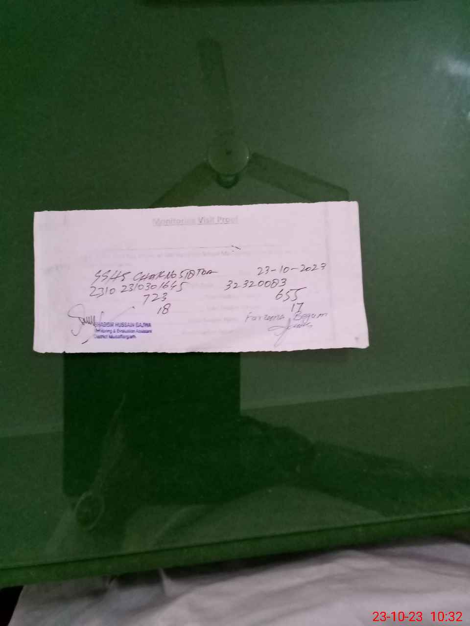 | Monitoring Date: 23-10-2023 | Start Time: 23-10-2023 09:48 AM | End Time: 23-10-2023 10:33 AM | Name of MEA: SH**** HU**** | |