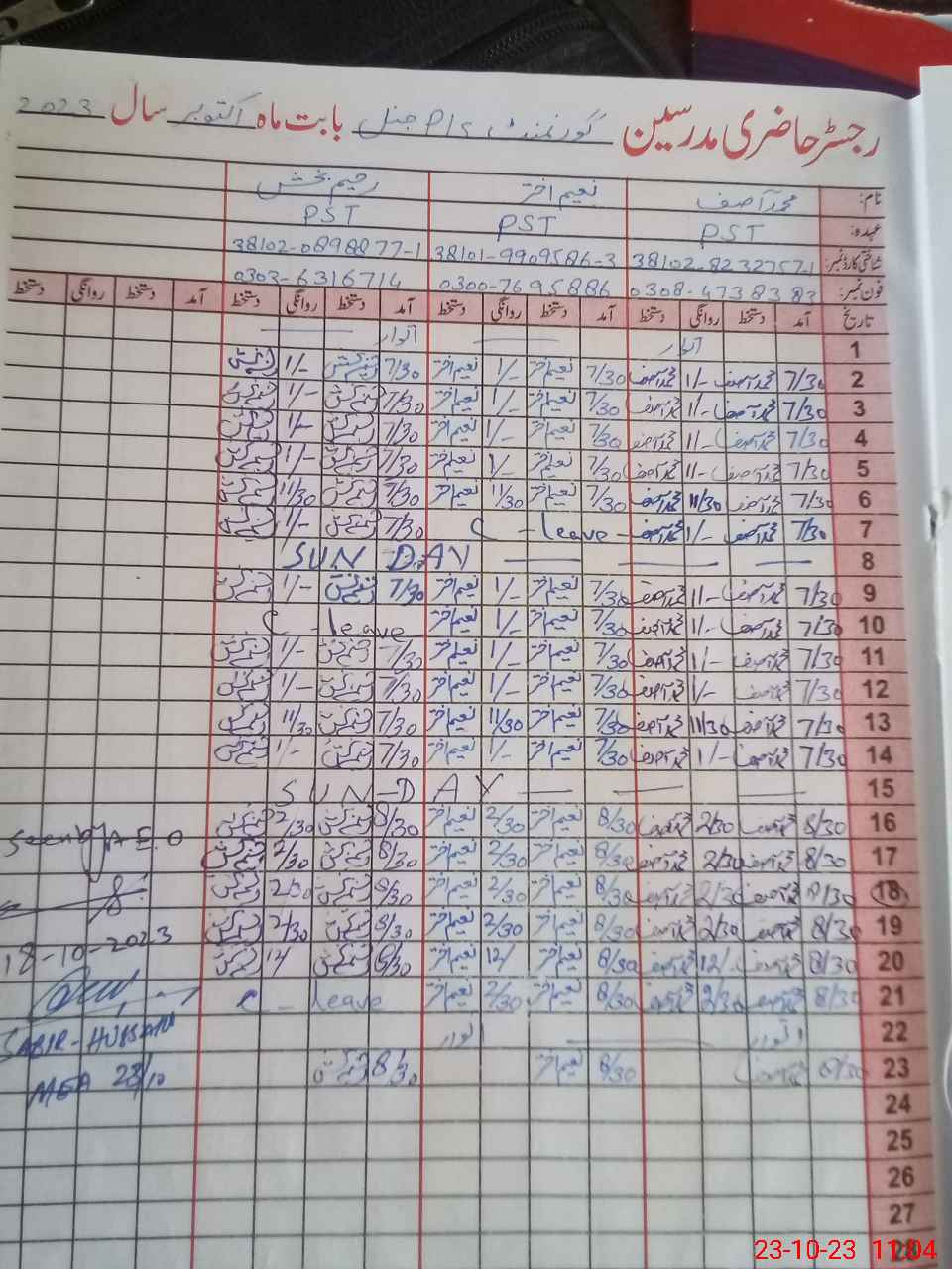 | Name: Mu**** AS**** Designation: (School Headmaster's/Headmistress's) PST SCI MATH Phone/Cell Number: 03**** |