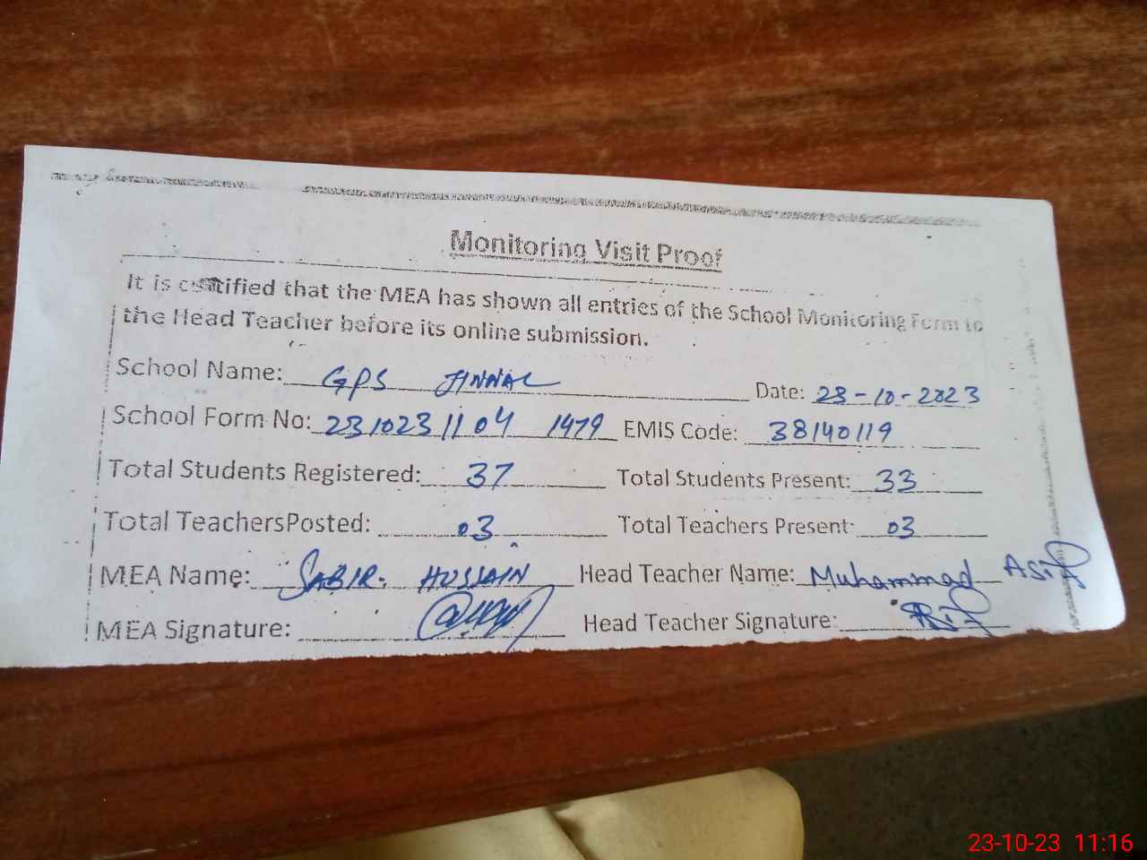 | EMIS Code: 38140119 | Name of School: GPS JINNAL | |||