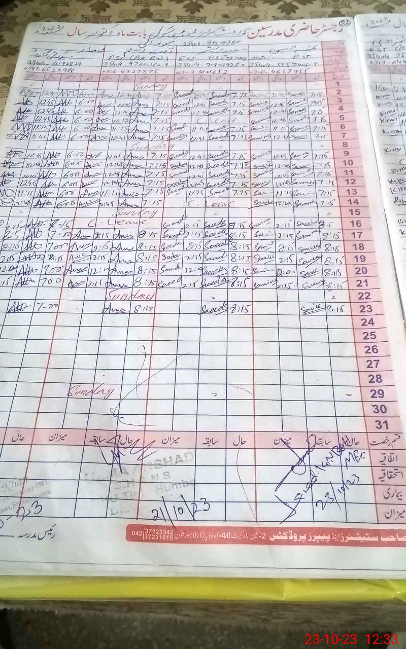 | CNIC | Full Name | Designation | R/C | Absence During Last Calender Month |