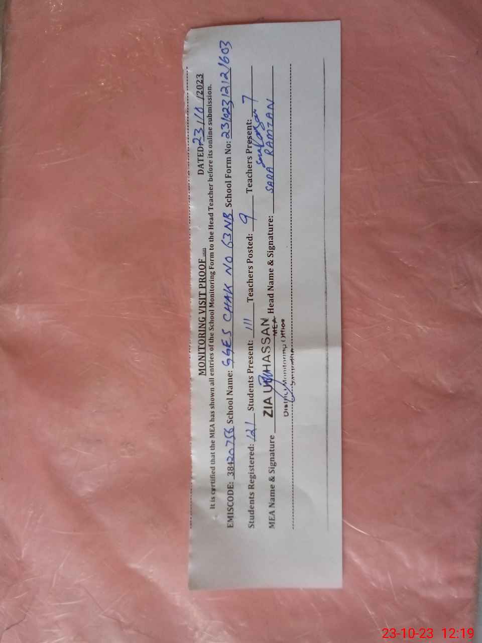 | EMIS Code: 38420756 | Name of School: GGES CHAK NO.63 NB | |||