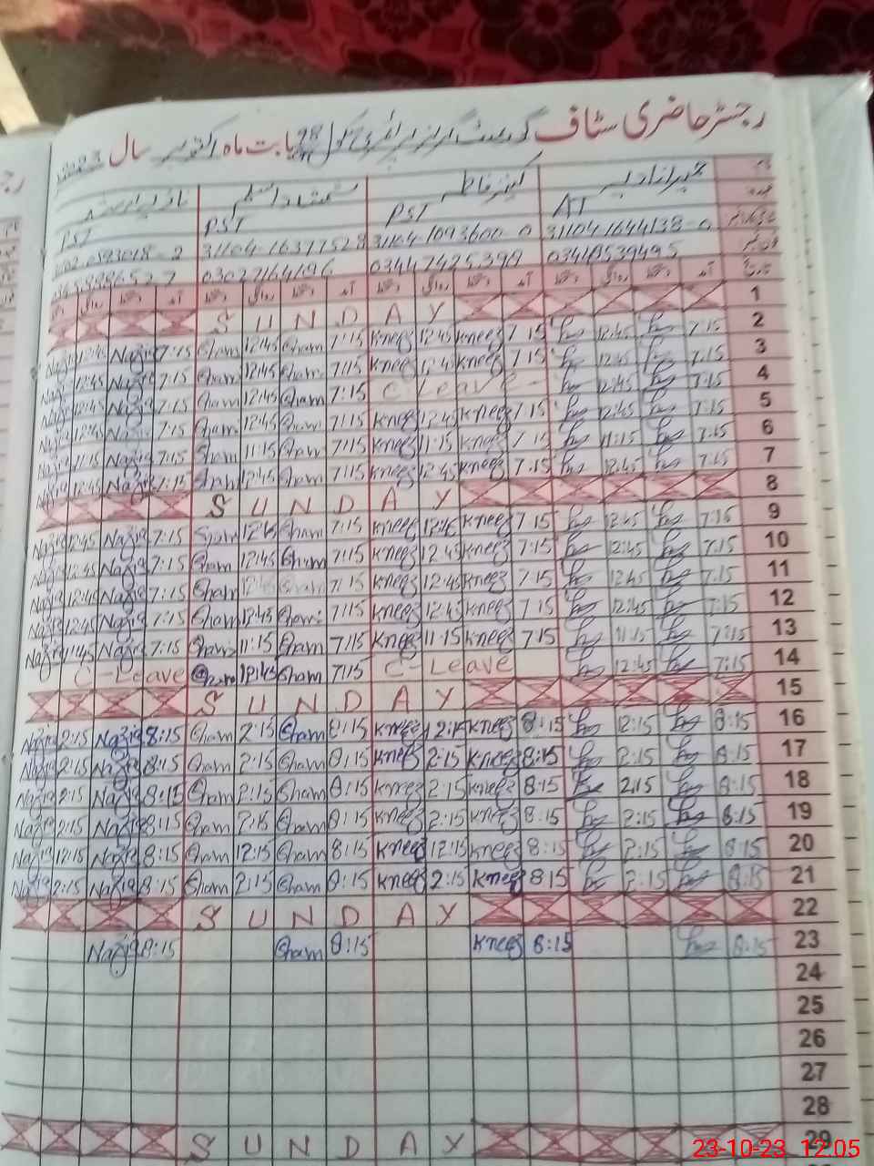 | CNIC | Full Name | Designation | R/C | Absence During Last Calender Month |